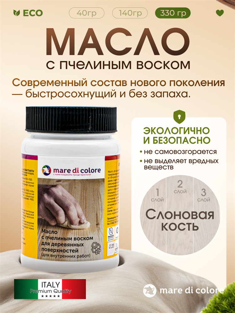 Масло для дерева с пчелиным воском Mare di colore – элегантный цвет, шелковистая текстура и надёжная защита для мебели, пола и интерьера бани или сауны